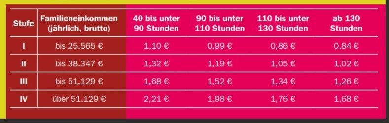 Für die Betreuung von Felix fallen damit pro Monat folgende Gebühren an: